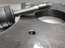 In unserer Mechanik können wir an Laserteilen mit gelaserten Kernbohrungen Senkungen und Gewinde einbringen.